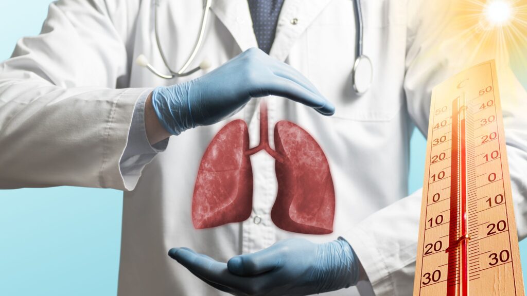 Protect your respiratory system by staying in well-ventilated indoor spaces and wearing light, breathable clothes that don’t cause overheating or discomfort.